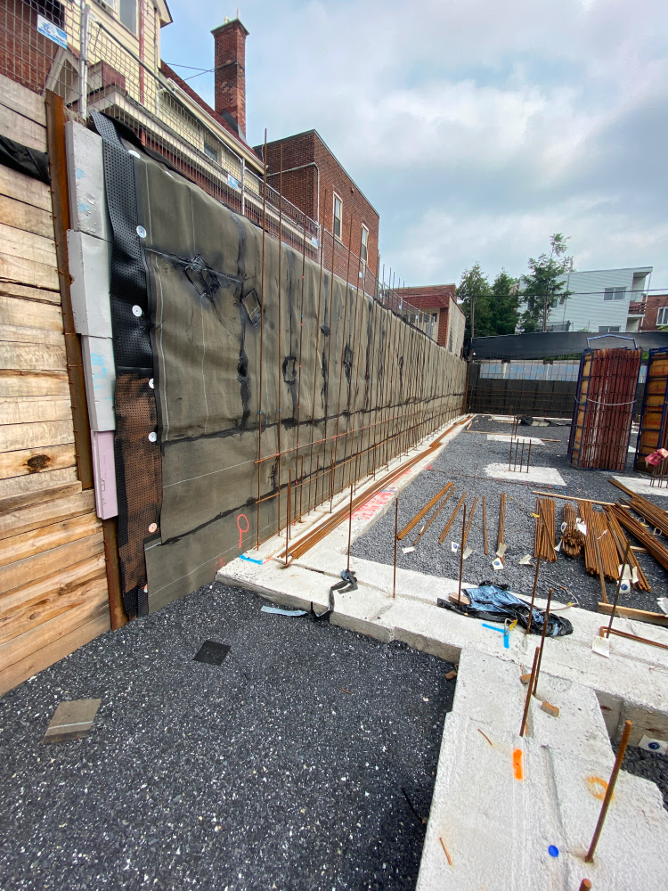 La membrane d’étanchéité blindside thermosoudée est une solution robuste composée de bitume modifié et d’une armature de composite. Sa surface est traitée avec un sablage, tandis que sa sous-face est couverte d’un film siliconé détachable. Cette membrane est spécialement conçue pour l’étanchéité verticale des murs berlinois. Pour assurer une étanchéité complète, le film plastique et les chevauchements transversaux doivent être thermosoudés, soit avec un chalumeau au propane soit avec un chalumeau à air-chaud électrique. Ce système bénéficie de la réaction exothermique du béton en cours de mûrissement, ce qui renforce l’adhérence entre les membranes d’étanchéité et le béton structural grâce à une liaison chimique et mécanique supérieure.
